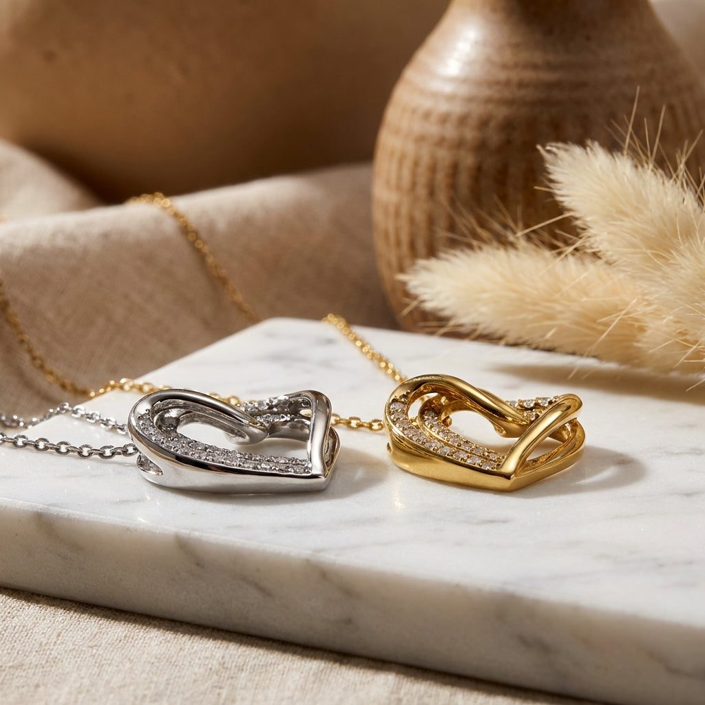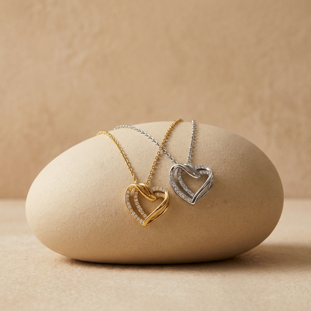 Disponibile in oro radiante e argento sofisticato. La collana AMORE ETERNO si adatta al tuo stile, sia che tu preferisca il lusso caldo o la luminosità fresca.